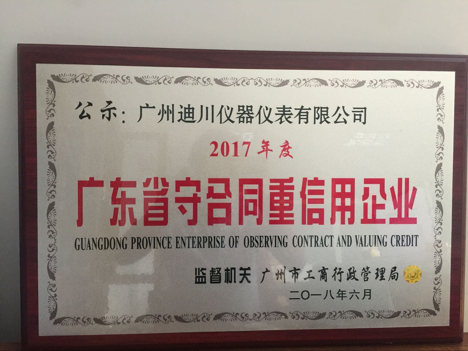 熱烈(lie)祝賀公司榮(róng)獲2017年度廣東(dong)省守合同重(zhòng)信企業💯
