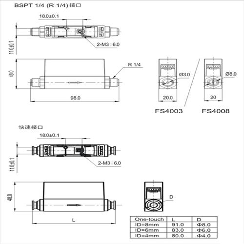 BSPT1/4(R1/4),4mm/6mm/8mm快速接(jiē)頭 |