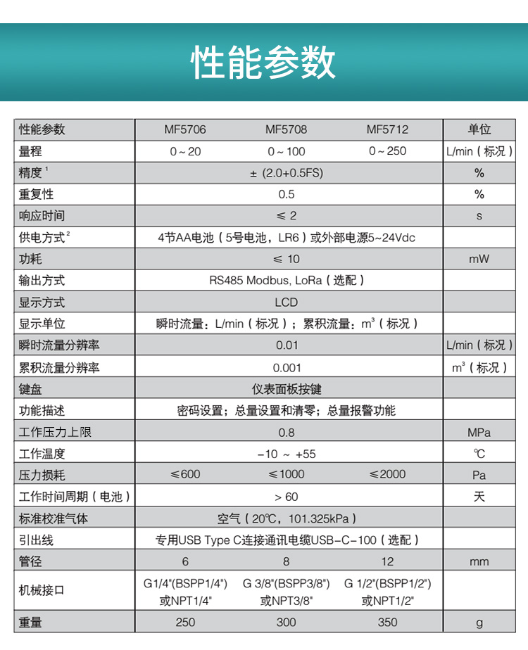 MF5712-G-250-A-B氣(qì)體質量(liang)流量計(jì) 計(ji)技術參(cān)數:
