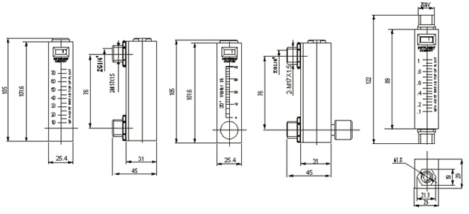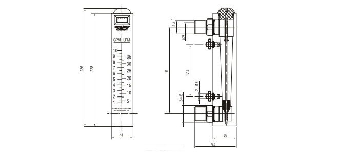 LZB-10 面(mian)闆式流(liu)量計 | LZB-1001M | 0.1~1GPM/0.5~4LPM | 水 | 不帶(dài)閥 |