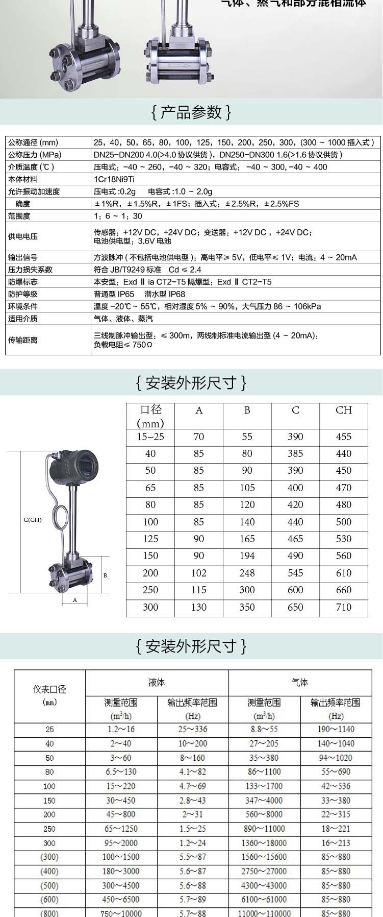 主要用于(yu)工業管道介質流(liú)體的流量測量,如(ru)氣體、液體、蒸氣等(děng)多種介質。其特點(dian)是壓力損失小,量(liàng)程範圍大,精度高(gāo),在測量工況體積(ji)流量時幾乎不受(shou)🤞流體密度、壓力、溫(wēn)度、粘度等參數的(de)影💁響。無可動機🔞械(xiè)零件,因此可靠性(xing)高,維護量小。儀表(biǎo)參㊙️數能長期穩定(dìng)。渦街流量計采用(yong)壓電應力式傳感(gan)器,可靠性🥰高,可在(zai)-20℃~+250℃的工🎯作溫度範圍(wéi)内工作。有模拟标(biao)準💃🏻信号,也有數字(zi)☁️脈沖信号輸出,容(róng)易與計算機等數(shu)字系🤟統🏃♂️配套使用(yòng),是一種❗比較先進(jìn)、理想的流🏃♂️量儀表(biao)。